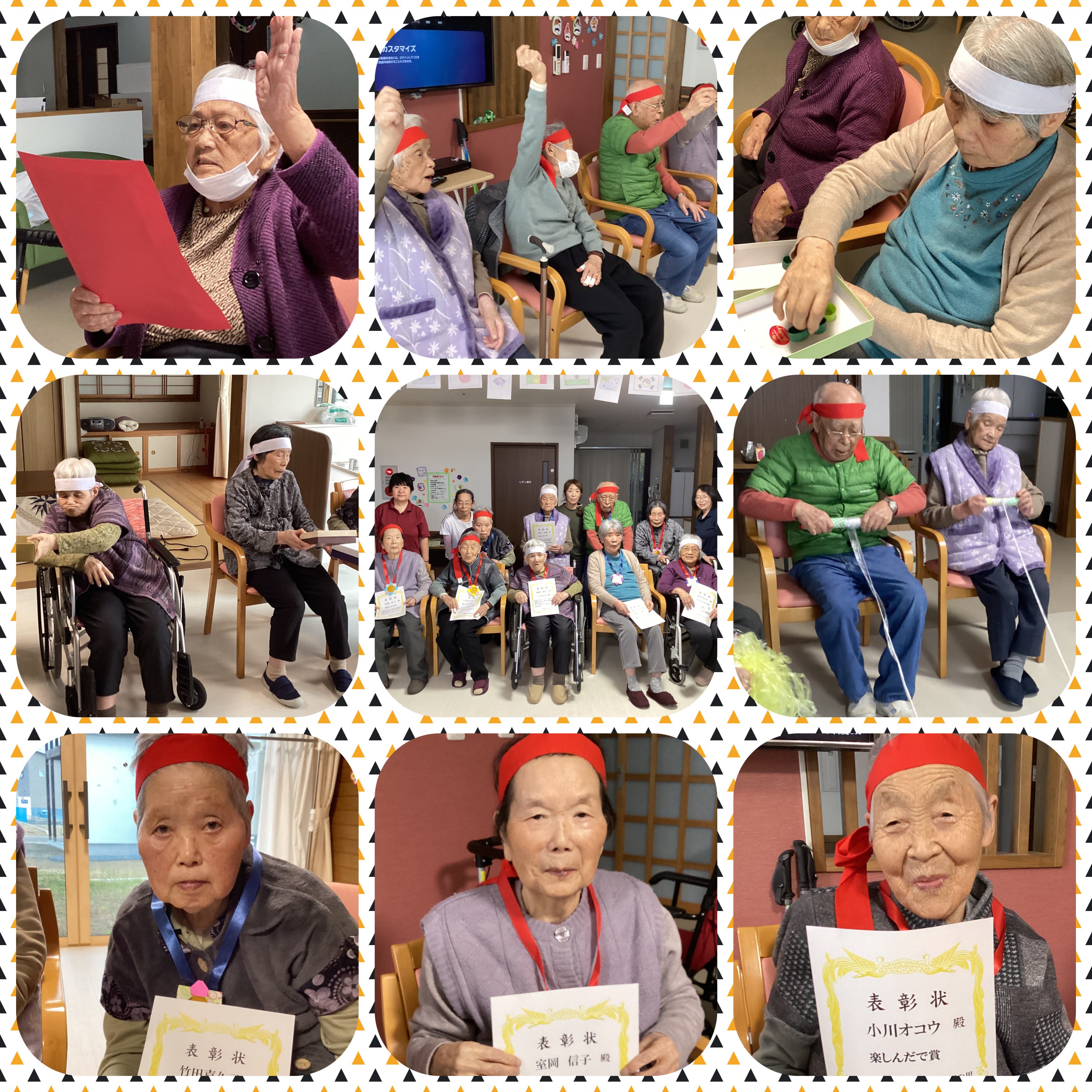 運動会を行いました。風船バレーや糸巻き等5種目行い、皆様、真剣に楽しく参加されていました。「がんばれ〜!」「いいぞ〜!」ととても盛り上がりました。